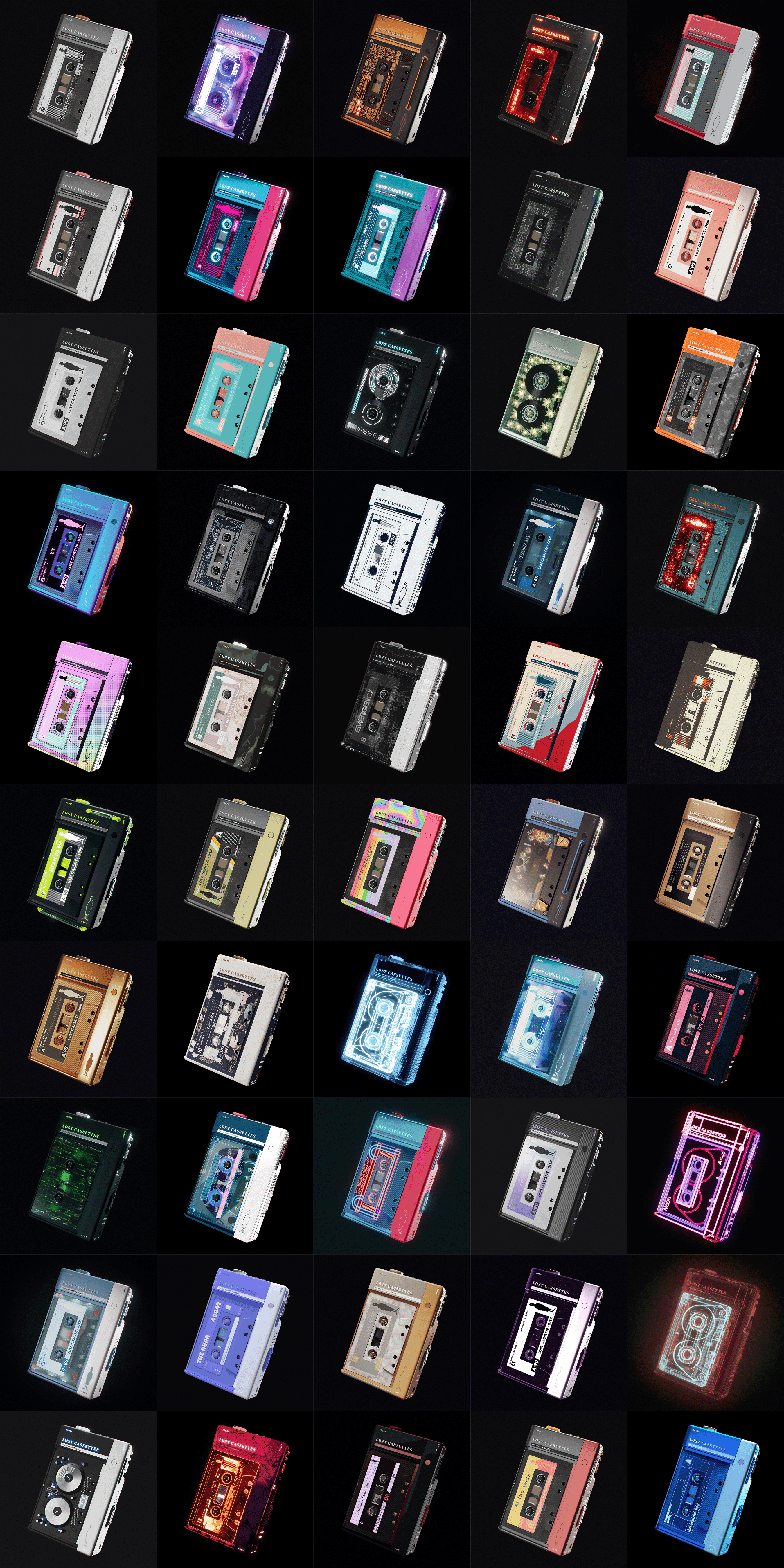 A collection of Cassettes NFT renders each with their own animation.